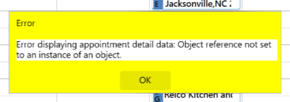 Error displaying appointment detail data: Object reference not set to an instance of an object.